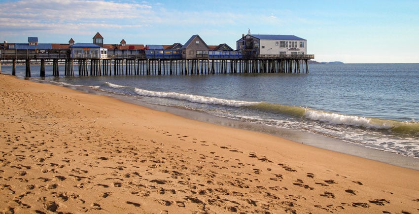 Maine’s best-known beach is Old Orchard, a popular resort town since the mid-1800s. In summer, its seven continuous miles of soft white sand are alive with kids, sandcastles, beach balls, towels, and umbrellas. In winter, the popular pier is often the only thing to interrupt the view along the length of the beach.